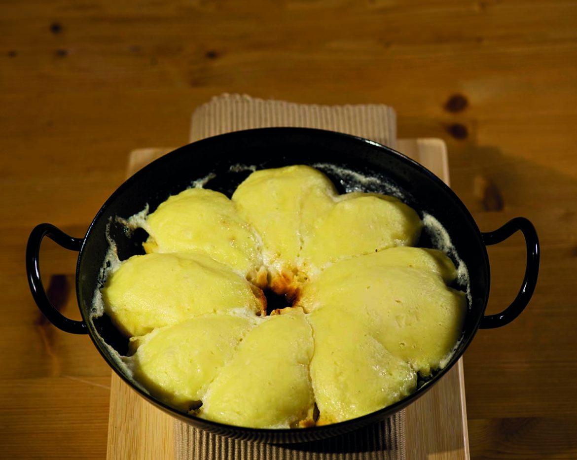 Ei mit Sauerrahm verrühren. Griffiges Mehl sowie Backpulver beimengen. Den Teig kurz stehen lassen. In einer Pfanne etwas Wasser mit Butter und Salz aufkochen. Nocken in das kochende Butter-Salzwasser hineinsetzen. Zugedeckt langsam kochen lassen. So lange kochen, bis das Wasser verdunstet ist und die Nocken zu bräunen beginnen. Aus der Pfanne ausstechen und anrichten. Rahmnocken: ein altes, genial gutes Rezept. Wenn die Kühe im Frühjahr und Sommer frisches Gras bekamen, gaben sie Milch mit mehr Fettgehalt, daher mehr Rahmausbeute. Aus diesem Grund konnte man sich „opulente“ Gerichte „leisten“. Zu anderer Zeit wurde der Rahm zur Herstellung von Butter verwendet.