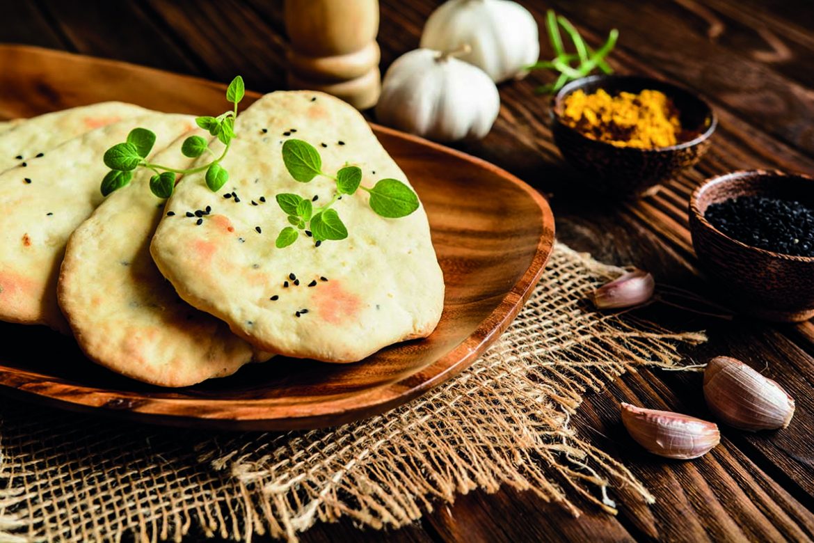 Auf 220 °C vorheizen und insgesamt ca. 20 Minuten backen. Nach ca. 10 Minuten die Fladen mit einer Backschaufel umdrehen und weitere 10 Minuten backen. Danach noch warm mit etwas Kräuterbutter bestreichen.